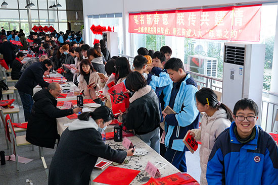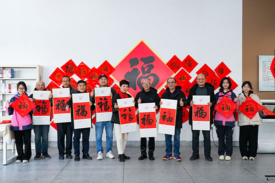 校黨委書記范曉春與硯邊歲月書法社骨干成員徐新奇、鄭強(qiáng)勝、蔣雪揚(yáng)、許韜等共同參與,特邀學(xué)校黨建共同體單位嘉興大學(xué)建工學(xué)院黨委書記童勇軍以及國(guó)家級(jí)工藝美術(shù)大師童人杰,省書協(xié)會(huì)員柴林根、江軍和塘匯街道人大工委主任張玨一行來(lái)校,共同參與寫福送春聯(lián)活動(dòng),現(xiàn)場(chǎng)洋溢著一派其樂(lè)融融、福氣滿滿的祥和氛圍。