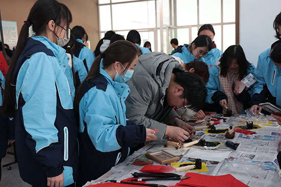 在現(xiàn)場(chǎng)工作人員的指導(dǎo)下,師生們還親身體驗(yàn)了拓印技藝,感受非遺傳統(tǒng)文化的魅力。新年拓福,以拓為靈,大家選擇自己喜歡的模具,輕輕按壓,墨色緩緩滲透紙張,一筆一畫都承載著對(duì)未來(lái)的美好憧憬。