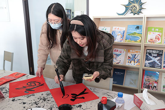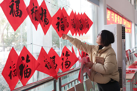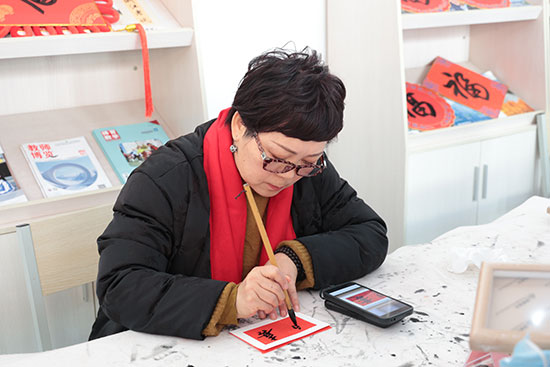 參與活動(dòng)的師生們也躍躍欲試,參照字帖,手握毛筆,在紅紙上盡情揮毫。筆鋒游走,墨香四溢,一個(gè)個(gè)或青澀稚嫩、或圓潤(rùn)可愛(ài)的“福”字躍然紙上,飽含著大家對(duì)新春的美好祈愿。