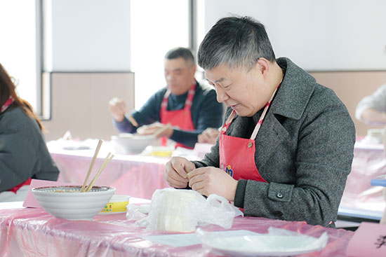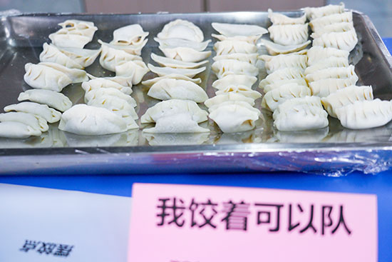 比賽分為團(tuán)體賽、個(gè)人賽兩個(gè)項(xiàng)目,分別從時(shí)間、質(zhì)量打分。團(tuán)隊(duì)賽還設(shè)了最佳人氣餃子獎(jiǎng),邀請(qǐng)30名試吃評(píng)星員給最好吃的餃子亮星。現(xiàn)場(chǎng)氣氛和諧、笑語(yǔ)不斷,大家時(shí)而探討心得,時(shí)而過招切磋,齊心協(xié)力,分工合作,一張張潔白的面皮配上精心調(diào)好的餡料變成了一個(gè)個(gè)胖嘟嘟、圓鼓鼓的餃子,每一個(gè)餃子都承載著對(duì)新年的美好祝愿。