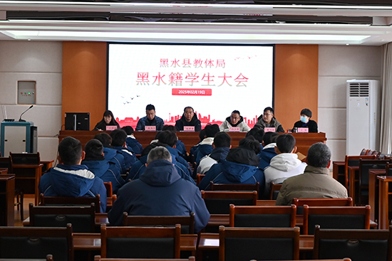 2月19日黑水籍學生大會上,黑水教體局領導對全體黑水籍在校學生開展感恩教育、養成教育。