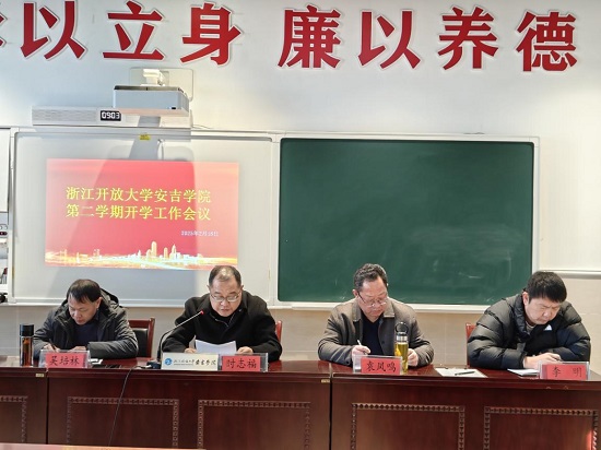 為了做好開學工作,2月18日上午,浙江開放大學安吉學院全體教師在教師會議室召開2025年春季學期開學工作會議。會議由安吉學院黨支部書記、院長時志福主持,全校老師參加。