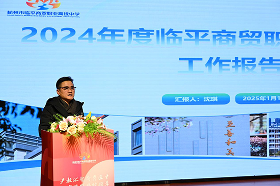 集團理事長兼校長沈琪代表集團致歡迎辭并作2024年度教育集團工作報告。沈琪校長對長期關(guān)心和支持集團發(fā)展的教育主管部門、有關(guān)單位以及積極推進(jìn)協(xié)同育人的成員單位表示衷心感謝,他從人才培養(yǎng)、教育教學(xué)成果、教師隊伍建設(shè)、產(chǎn)教融合進(jìn)展、青荷育人品牌、校園安全管理等多個方面介紹了2024年度商貿(mào)職高取得的辦學(xué)成果,同時表達(dá)了對學(xué)校2025年發(fā)展之路的展望。