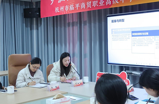 電商專業(yè)教研組長趙也、金融事務(wù)專業(yè)教研組長喻云蘭分別從教研組概況、師資隊伍建設(shè)、專業(yè)發(fā)展等方面分別介紹了學(xué)校電子商務(wù)、金融事務(wù)的專業(yè)建設(shè)情況。