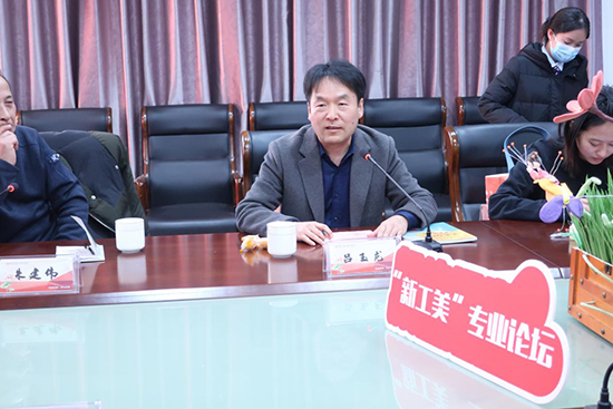 工藝美術(shù)專業(yè)教研組組長回志宏從專業(yè)概況、教師培養(yǎng)、專業(yè)建設(shè)、教學(xué)成果等方面介紹了學(xué)校美術(shù)專業(yè)的基本情況。