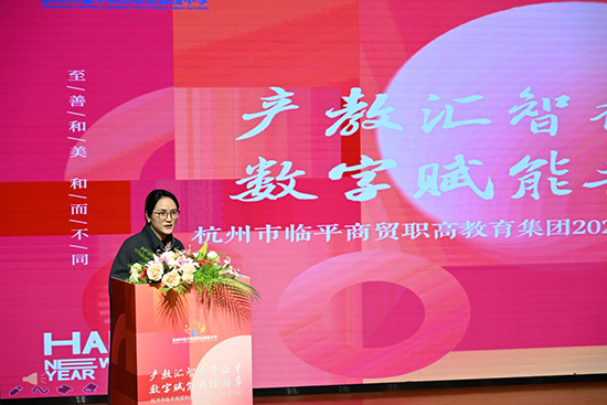 1月10日,杭州市臨平商貿(mào)職業(yè)高級中學(xué)召開2024年杭州市臨平商貿(mào)職業(yè)高級中學(xué)教育集團年度會議。浙江省教育科學(xué)研究院職業(yè)與成人教育研究所所長崔陵,浙江農(nóng)業(yè)商貿(mào)職業(yè)技術(shù)學(xué)院黨委委員、創(chuàng)意設(shè)計學(xué)院院長呂玉龍,杭州科技職業(yè)技術(shù)學(xué)院旅游學(xué)院副書記劉昀,臨平區(qū)教育局黨委委員張禹,臨平區(qū)供銷社(集團)副主任、一級調(diào)研員金云平,臨平區(qū)南苑街道黨工委委員王亞瓊,臨平區(qū)農(nóng)業(yè)局科技教育科科長蔣鳳至,臨平第一幼兒園園長章敏,臨平南禾幼兒園園長葉萍,臨平區(qū)教育局基礎(chǔ)教育科職高負(fù)責(zé)人沈美華等人與會。浙江省財經(jīng)商貿(mào)行業(yè)指導(dǎo)委員會、浙江郵電職業(yè)技術(shù)學(xué)院經(jīng)濟管理學(xué)院、杭州科技職業(yè)技術(shù)學(xué)院商務(wù)管理學(xué)院、杭州市教育科學(xué)研究院職教研究室各位專家,臨平區(qū)電商行業(yè)協(xié)會、旅游行業(yè)協(xié)會、家紡行業(yè)協(xié)會、文化創(chuàng)意產(chǎn)業(yè)協(xié)會,杭州老板電器股份有限公司、浙江省家紡產(chǎn)業(yè)創(chuàng)新服務(wù)綜合體等集團成員單位盡數(shù)出席。學(xué)校班子成員、相關(guān)中層干部及各專業(yè)組負(fù)責(zé)人參加會議。