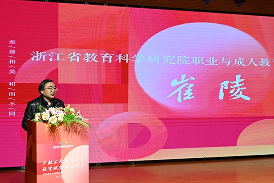浙江省教育科學(xué)研究院職業(yè)與成人教育研究所所長崔陵在肯定臨平商貿(mào)職高取得成績的同時,憑借專業(yè)高度,為學(xué)校職業(yè)教育發(fā)展提供前沿理念,指明創(chuàng)新突破的方向,激勵學(xué)校在教學(xué)模式、課程體系等方面大膽探索,提升職業(yè)教育核心競爭力。