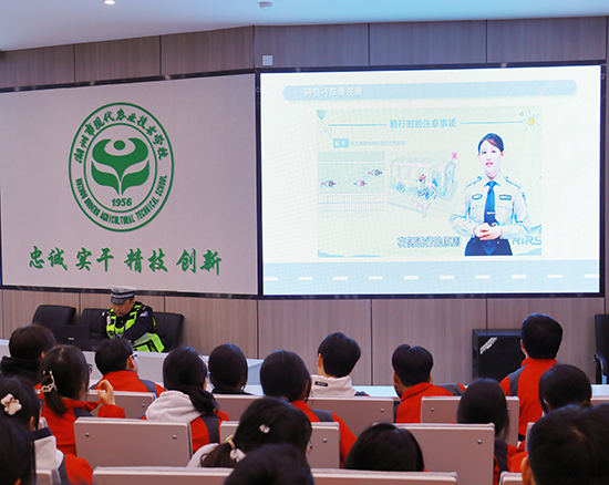 為增強(qiáng)學(xué)生的交通安全意識(shí),提高自我保護(hù)能力,預(yù)防道路安全事故發(fā)生,3月3日,湖州市埭溪交警中隊(duì)的交警走進(jìn)湖州市現(xiàn)代農(nóng)業(yè)技術(shù)學(xué)校,為學(xué)生帶來一場(chǎng)別開生面的交通安全講座。