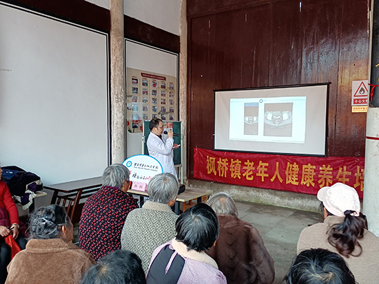 2月27日下午,諸暨市楓橋鎮(zhèn)社區(qū)教育學(xué)校連同諸暨市第二人民醫(yī)院的孟建鋒、蔡小虎兩位專家來到楓橋鎮(zhèn)魏廉村文化禮堂,對村內(nèi)老年人講授健康知識(shí)。