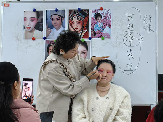 開班典禮上,李校長做了簡短的講話,重點強調了學習期間的安全和紀律問題。隨后,學員們在唐麗娜老師的帶領下,開始了《戲曲化妝與扮相》的第一節課。課堂上,唐老師為大家詳細講解了“生”和“旦”的化妝和涉及化妝工具的使用,并指導學員們邊看邊練,使學員們更好掌握化妝的基本知識和操作。