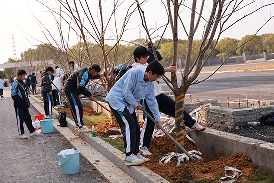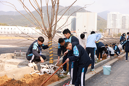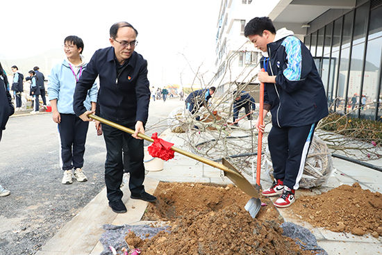 “今天種下的每一棵樹苗,不僅是自然生命的延續(xù),更是鄞州職高精神傳承的象征。希望老師們可以像種下的玉蘭花那樣,清香綿延,潤澤學生;也希望同學們可以像他們種下的櫻花那樣,充滿活力與浪漫,不負青春韶華。”校長張武劍說。