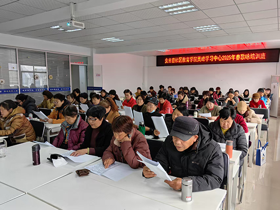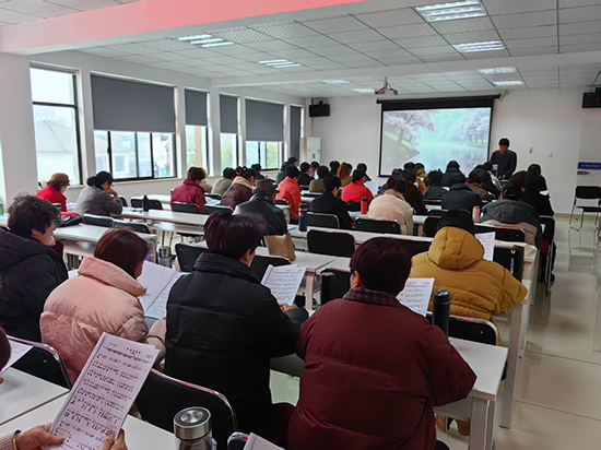 近日,走進安吉縣社區(qū)教育學院靈峰學習中心(靈峰成校)的教室,悠揚的歌聲便縈繞耳畔。53名歌詠班學員正跟著宋雪東老師,認真學唱著云飛的《永遠的贊歌》。