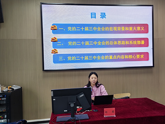 北侖區委黨校趙老師圍繞黨的二十屆三中全會精神進行了深入解讀,她詳細闡述了全會提出的新思想、新論斷、新要求,引導入黨積極分子深刻領會全會精神,把握改革方向,增強改革自覺。