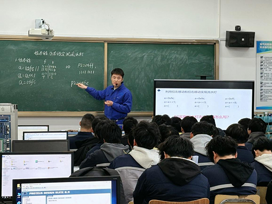 隨后,教學督導組來到24智能控制班,聽取董彬彬老師講授的《智能系統控制及應用》課程。本節課聚焦車床主軸與潤滑電動機的PLC控制設計,依托西門子S7-1200 PLC實訓設備,學生需實現兩臺電動機的“順序起動、逆序停止”的控制。教學督導組對董老師扎實的專業素養及課堂把控能力給予肯定,并特別點贊實訓室配備的10套西門子S7-1200PLC 控制的船用柴油機冷卻水溫度自動控制系統和船用鍋爐燃燒時序控制系統等實訓裝置,稱其“雖數量有限,但功能強大,充分支撐了產教融合的實踐需求”。