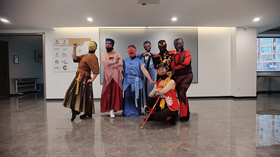 活動現場,潮阿姨們扮成的哪吒、敖丙、太乙真人、申公豹等角色驚艷亮相。開場的自我介紹,阿姨們就通過生動的肢體動作,將角色的性格特點如石磯娘娘的自戀、太乙真人的憨厚、申公豹的桀驁展現得淋漓盡致。特別是扮演哪吒的丁阿姨,丸子頭配紅肚兜,脖掛乾坤圈,手持火尖槍,活脫脫一個狂傲的哪吒三太子,而身著藍色長袍的敖丙扮演者鄭阿姨,氣質優雅,盡顯角色的溫潤。