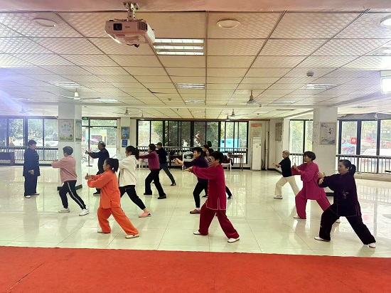 “馬步要扎牢,膝蓋與腳尖方向一致,握拳不能太緊,動(dòng)作要緩慢、有力。”課堂教學(xué)中,張老師耐心地向?qū)W員們講解太極拳套路的基本功,從基礎(chǔ)的手型、步型講起,一招一式分解動(dòng)作,耐心糾正學(xué)員們的姿勢(shì),深入淺出的講解讓學(xué)員們快速領(lǐng)略到太極拳的精髓。