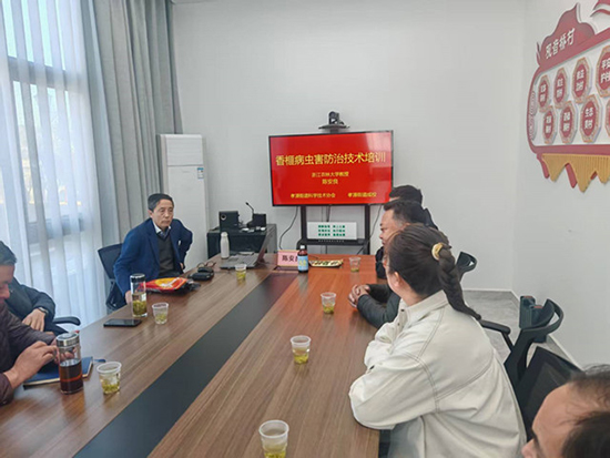 “為了今天的培訓(xùn)和實(shí)踐活動(dòng),我準(zhǔn)備已久。一是將我近三年來(lái)對(duì)香榧病蟲害防治技術(shù)研究成果扎實(shí)落地并把這些技術(shù)教給今天來(lái)的骨干力量,二是到香榧林里去實(shí)地查看……”在觀音橋村文化禮堂一樓會(huì)議室里,來(lái)自浙江農(nóng)林大學(xué)林業(yè)與生物技術(shù)學(xué)院森林保護(hù)學(xué)科專家陳安良教授正和前來(lái)參加香榧種植技術(shù)的幾十位農(nóng)戶學(xué)員娓娓道來(lái),接著作了主題為《香榧病蟲害防治技術(shù)培訓(xùn)》的講座,并不時(shí)地與參訓(xùn)學(xué)員們互動(dòng)交流。