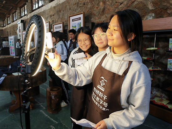 值得一提的是,此次活動還融入了電子商務專業的特色。在制作和品嘗粉干的過程中,三組學生分別進行了粉干直播帶貨。他們通過短視頻平臺,向觀眾展示了雙橋粉干的制作過程、歷史文化以及口感特點,吸引了大量網友的關注和購買。這不僅為雙橋粉干打開了更廣闊的市場,也為當地村民帶來了實實在在的經濟收益。