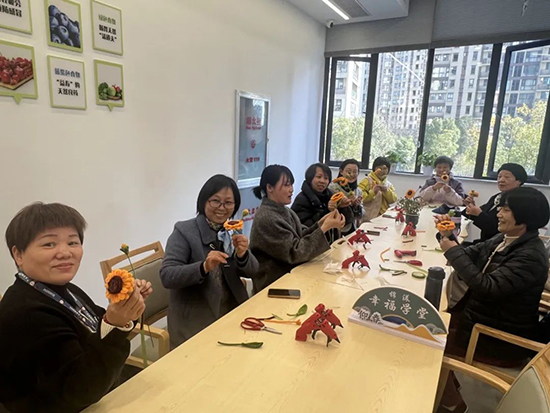 春日暖陽(yáng),花香四溢。近日,慈溪市錦漾未來(lái)社區(qū)手工幸福學(xué)堂內(nèi)歡聲笑語(yǔ),一堂別開(kāi)生面的扭扭棒花藝課正在這里熱鬧進(jìn)行,20余名社區(qū)居民齊聚一堂,用靈巧的雙手將五彩斑斕的扭扭棒變成一朵朵栩栩如生的花朵,感受手工制作的樂(lè)趣。