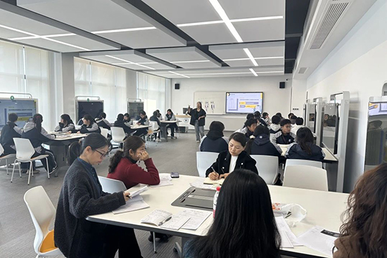 在教學(xué)展示環(huán)節(jié),德清職業(yè)中專魯雯雯老師開設(shè)了一堂服裝制版《直筒褲“爆改”喇叭褲》公開課,課上巧妙利用AI視頻導(dǎo)入教學(xué)內(nèi)容,通過層層遞進的小組探究方式,引導(dǎo)學(xué)生深入了解直筒褲與喇叭褲的款式特點,并動手繪制從直筒褲到喇叭褲的變化過程,課堂氛圍活躍,充分展示了服裝專業(yè)教育方面的創(chuàng)新與實踐。