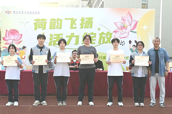 在全體運動員、教練員、工作人員的共同努力下,學院各體育參賽隊在2024年臨平區體育競賽中屢獲佳績,彰顯青荷學子青春力量。政教處主任方建衛宣讀了“青荷體育標兵”名單,院領導為各運動員們頒獎,對在區體育競賽中表現突出的學生進行表彰。