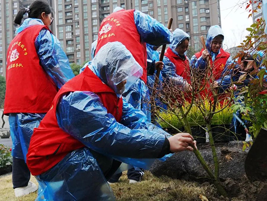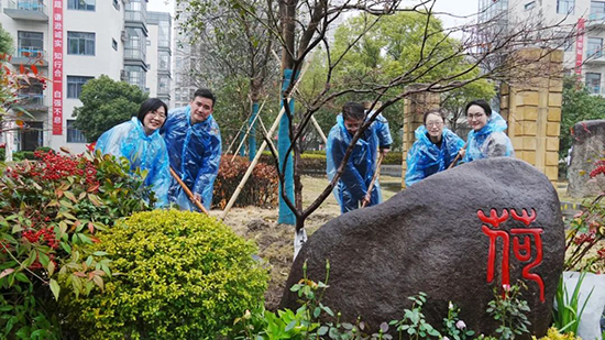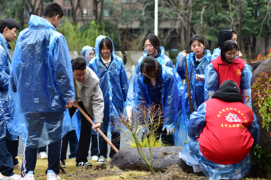 3月12日上午,院長沈琪、黨委書記邵曉舟、副院長陳勝瑩、查文婷、唐瑛帶領(lǐng)院團(tuán)委全體成員與學(xué)生干部代表、志愿者代表,共同為校園“愿”“荷”兩塊石頭景觀區(qū)域添綠增彩。領(lǐng)導(dǎo)們分工明確,有的揮鍬鏟土,一鍬鍬泥土被精準(zhǔn)填入樹坑;有的則扶正樹苗,確保樹苗扎根穩(wěn)固,每一個(gè)動(dòng)作都認(rèn)真專注,充分彰顯對本次活動(dòng)的重視。