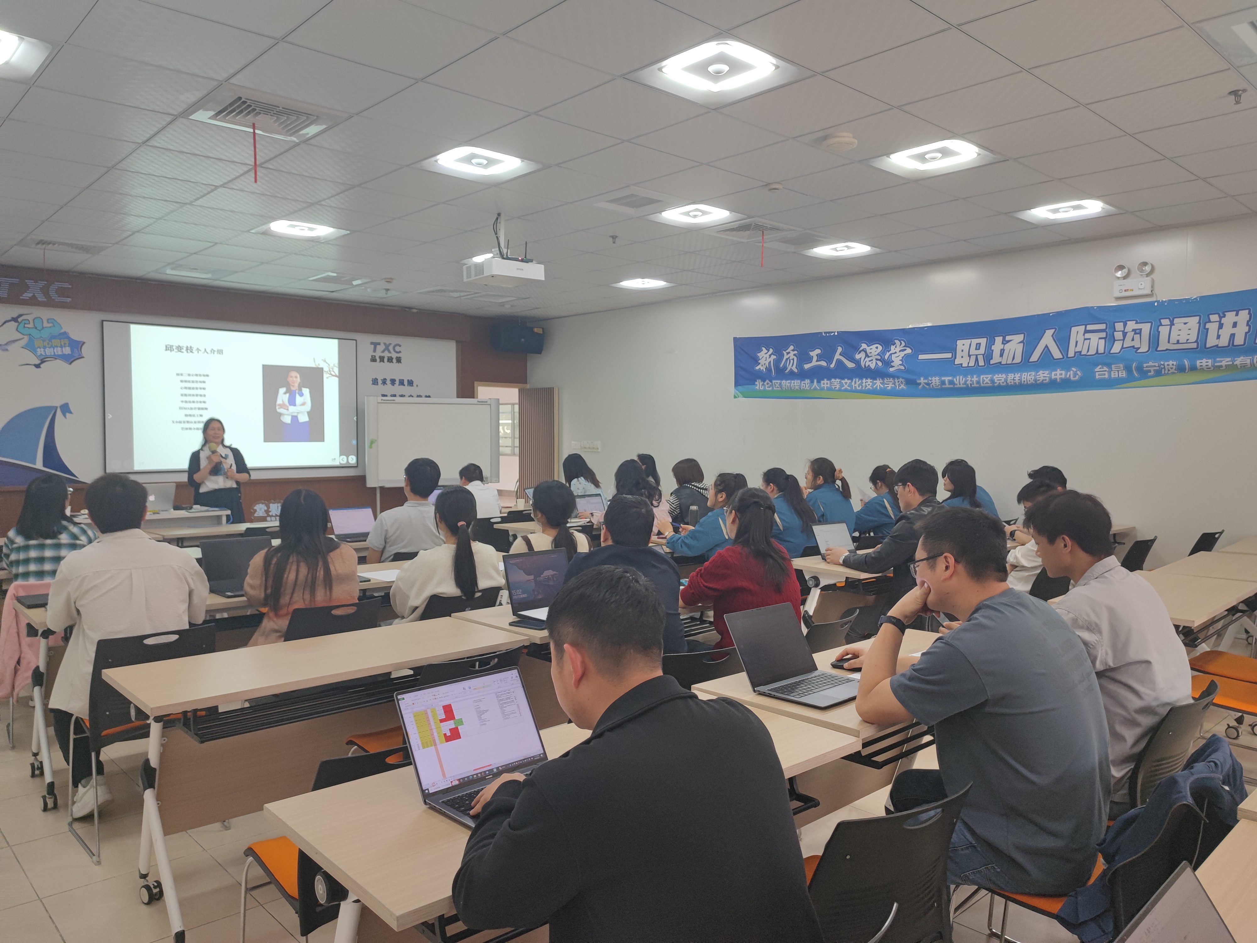 近日,應(yīng)臺晶(寧波)電子有限公司邀請,新碶成校邱變枝老師走進(jìn)新碶街道大港工業(yè)社區(qū),為該企業(yè)員工帶來了一場主題為《架起你我之間的彩虹——人際關(guān)系溝通技巧分析》的精彩講座。邱變枝老師長期致力于心理健康教育工作,具有豐富的企事業(yè)單位、社區(qū)、學(xué)校等領(lǐng)域的授課經(jīng)驗,其生動專業(yè)的講座風(fēng)格廣受好評。