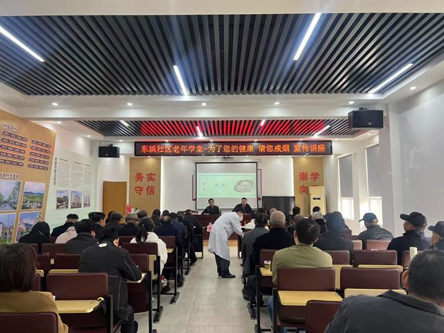 4月1日下午,安吉縣社區教育學院遞鋪分院攜手東浜社區開展“珍愛健康,遠離煙草”為主題的戒煙宣傳活動,特邀昌碩醫院呼吸科副主任醫師王軍擔任主講嘉賓,共吸引76名社區老年居民參與。