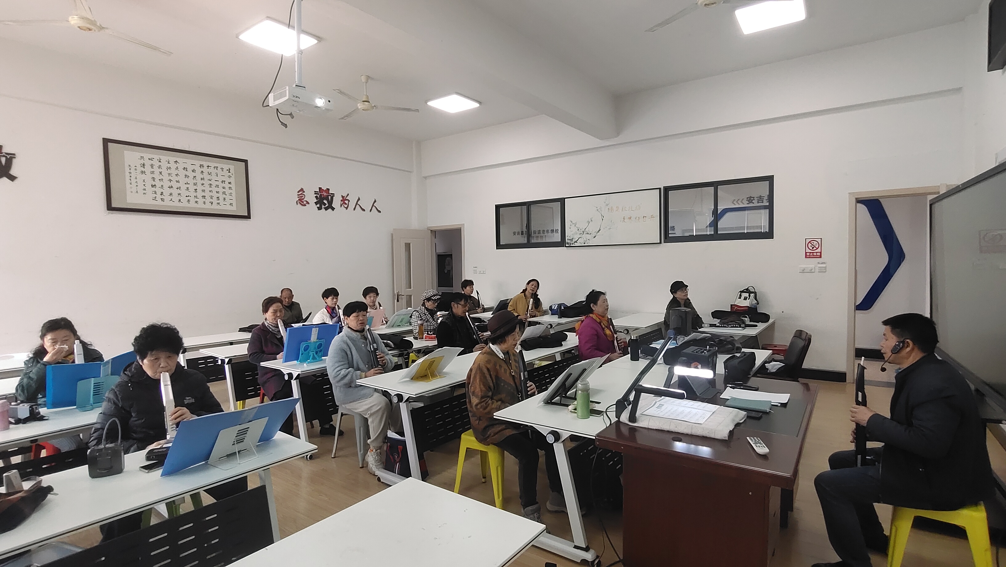培訓(xùn)過程中,吳商從電吹管的基本構(gòu)造、按鍵功能、吹奏姿勢等基礎(chǔ)知識講起,耐心細(xì)致地為學(xué)員們進(jìn)行示范和指導(dǎo)。考慮到學(xué)員們大多是零基礎(chǔ)的老年人,老師放慢教學(xué)節(jié)奏,手把手地糾正每一個(gè)學(xué)員的指法和吹奏動作。
