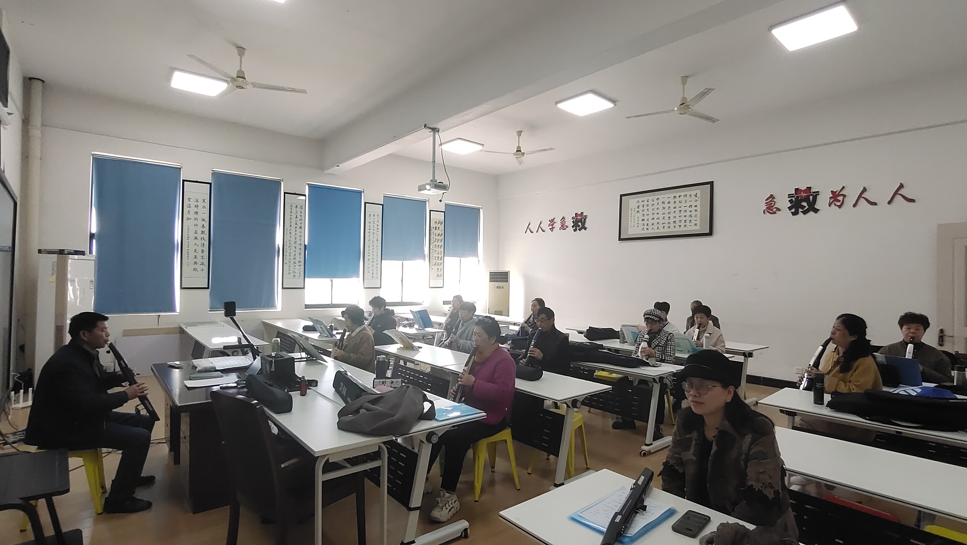 本次培訓(xùn)選取了電影《少林寺》中的經(jīng)典插曲《牧羊曲》作為學(xué)習(xí)曲目。這首歌曲旋律優(yōu)美、節(jié)奏舒緩,充滿了濃郁的中國風(fēng),深受大家喜愛。在老師的指導(dǎo)下,學(xué)員們從最初的單音練習(xí),逐漸開始吹奏簡單的旋律片段,盡管過程中遇到了不少困難,但大家始終熱情高漲,相互交流、相互鼓勵(lì)。