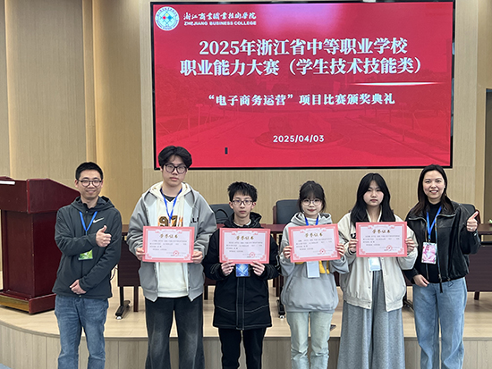 以賽促學,開啟電商人才新篇;以教強能,夯實行業進步階梯。4月3日,2025年浙江省中等職業學校職業能力大賽“電子商務運營”賽項在浙江商業職業技術學院舉行。海鹽職業教育中心參賽團隊22商務2班晏飄、22跨境班盧羿帆、23跨境班劉喬雅、23跨境班宣東昊等4名學生,與來自全省各地市的22組選手同場競技,經過2天激烈比拼最終榮獲團隊一等獎(第一名)的優異成績,并獲得了國賽資格。