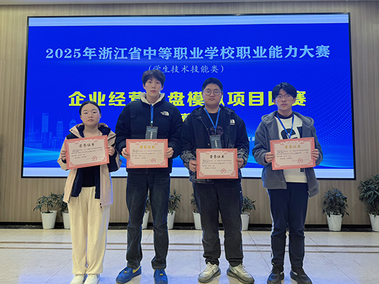 近日,2025年浙江省中等職業(yè)學(xué)校職業(yè)能力大賽(學(xué)生技術(shù)技能類)“企業(yè)經(jīng)營沙盤模擬”賽項在浙江商業(yè)職業(yè)技術(shù)學(xué)院圓滿落幕。在這場匯聚全省中職精英的激烈角逐中,海鹽職業(yè)教育中心參賽團隊22會計2班曹羅杰、孟凡月,23會計2班趙瑾萱、劉鑫源等4位同學(xué),憑借扎實的專業(yè)功底和出色的團隊協(xié)作,從全省20支精英隊伍中脫穎而出,榮獲省三等獎。