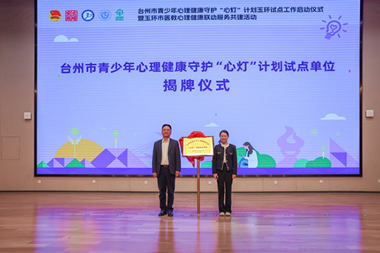 隨后,臺州團(tuán)市委副書記林輝輝與玉環(huán)市委副書記應(yīng)曙華攜手登臺,共同為臺州市青少年心理健康守護(hù)“心燈”計劃試點(diǎn)單位——玉環(huán)市中等職業(yè)技術(shù)學(xué)校揭牌,標(biāo)志著一項(xiàng)重要的心理健康守護(hù)工作正式落地。