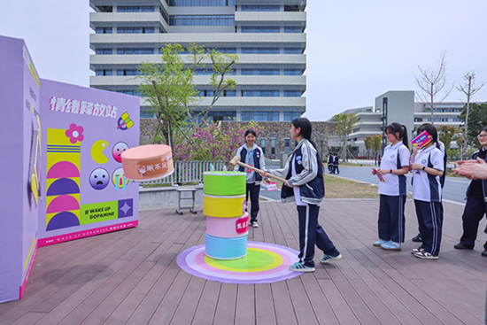 為了讓同學(xué)們的課余生活更加豐富多彩,同時營造出積極健康的校園心理氛圍,此次活動還別出心裁地在學(xué)校戶外湖邊策劃了一場妙趣橫生的“健心”游園會。游園會精心設(shè)置了一系列獨(dú)具匠心的心理健康主題游戲項(xiàng)目,如“吹爆煩惱”,讓同學(xué)們在趣味中釋放壓力;“討個彩頭”,帶來滿滿的心理能量;“情緒釋放站”,提供情緒宣泄的出口;“壓力變動力”,助力同學(xué)們轉(zhuǎn)換心態(tài);“做自己的光”,引導(dǎo)大家發(fā)現(xiàn)自身的閃光點(diǎn)。這些項(xiàng)目成功吸引了眾多學(xué)生踴躍參與,現(xiàn)場氣氛熱烈非凡。