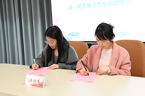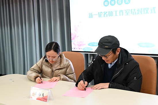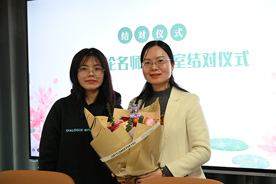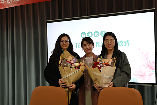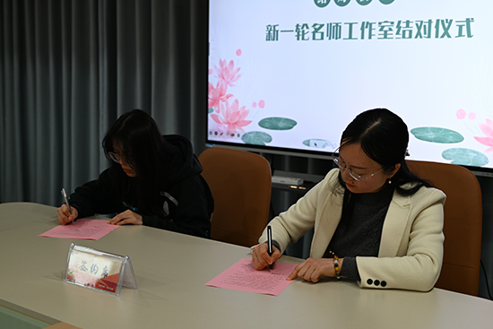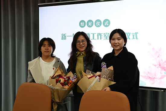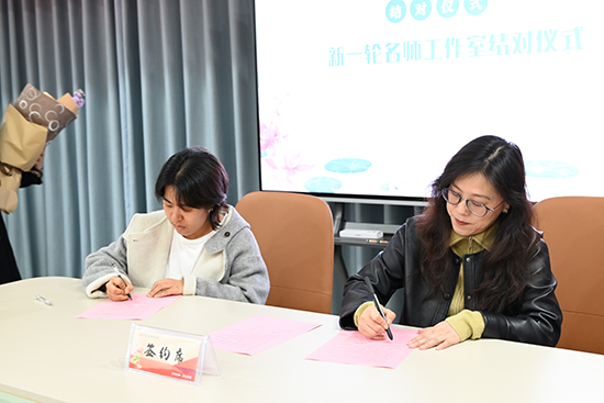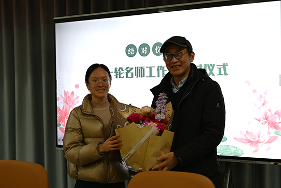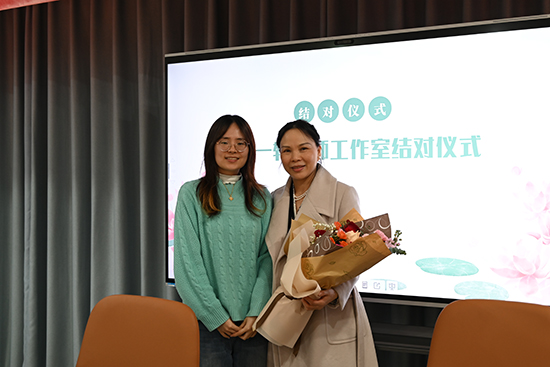 第二環節由學校科研處主任熊璐老師宣讀2025年學校名師工作室納新成員和新一輪名師工作室結對名單。隨后,活動進入了結對簽字儀式環節。新進學員與導師們鄭重簽訂了結對協議,確立結對關系。學員們為導師獻上鮮花,表達了對導師的敬意與感激之情。這一環節不僅象征著教育薪火的傳承,也體現了學院對青年教師成長的重視與支持。