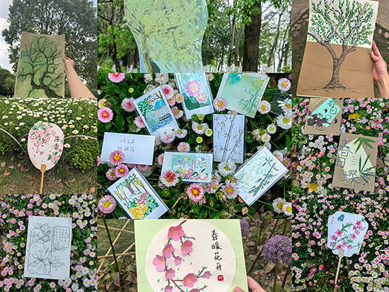 抵達體育公園后,各班級展開了豐富多彩的主題活動。24工美班的學生進行了“春景彩畫大比拼”,用畫筆記錄下春天的美景;24幼師班則制作了“春意書簽”,將花瓣、枝葉制成標本;24經貿班的學生在老師的帶領下認識新的植物。此外,同學們還在草地上分享美食,并自覺清理環境。