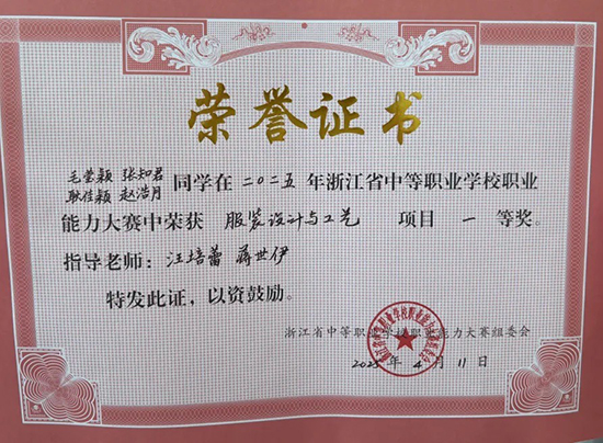 4月9日至11日,2025年浙江省中等職業(yè)學(xué)校職業(yè)能力大賽(學(xué)生技術(shù)技能類)“服裝設(shè)計與工藝”項目比賽在浙江紡織服裝職業(yè)技術(shù)學(xué)院舉行。北侖職高服裝專業(yè)代表隊在大賽中憑借精湛的技藝與獨具匠心的設(shè)計從眾多參賽隊伍中脫穎而出,一舉斬獲第一名的佳績。