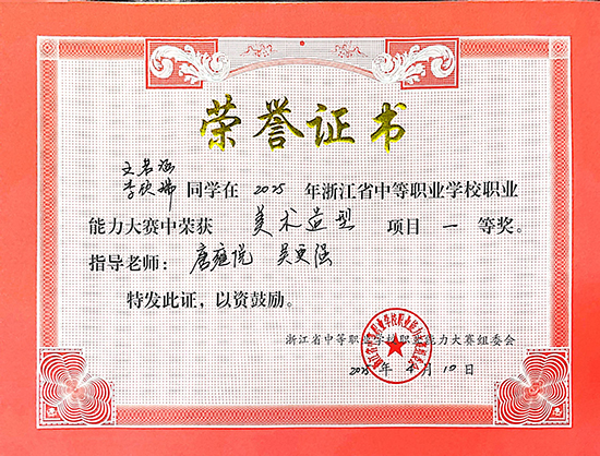 ——海寧職高學子在省職業能力大賽“美術造型”賽項中斬獲一等獎第一名