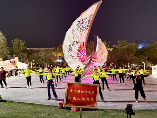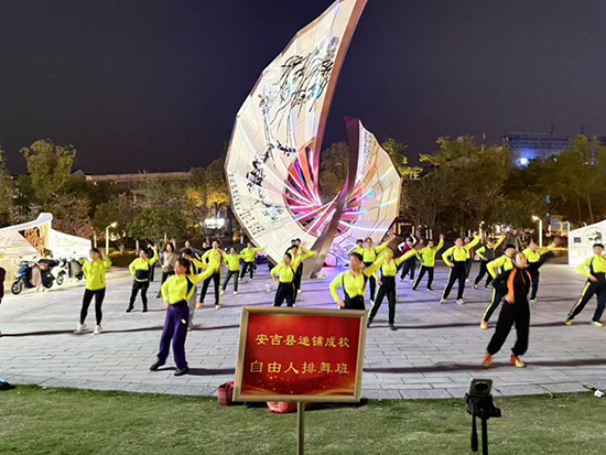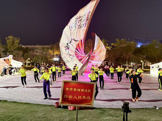 4月13日晚,安吉縣社區教育學院遞鋪分院在安吉縣中心廣場舉辦自由人排舞班公益教學活動,87名市民踏著歡快節拍,在專業導師指導下翩翩起舞,為春日的縣城增添了一道活力風景線。