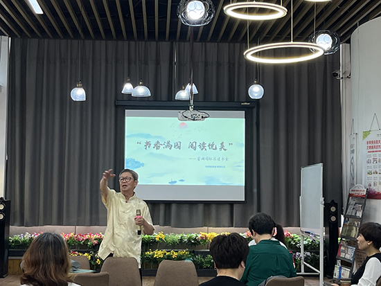 據鑒湖園社區書記沈肖霞介紹,此次讀書會是浙江省終身學習品牌“柯橋領讀者”的系列活動之一,也是柯橋成校社區教育進文化禮堂的特色活動。近年來,社區依托成校資源,組建朗誦社團,開展銀齡經典朗誦、“大手拉小手”親子共讀等活動,覆蓋全齡段居民,打造“家門口的書香陣地”。