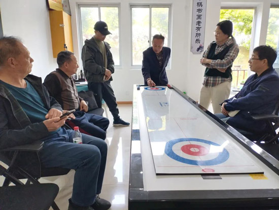 “這‘桌面運動’既考腦力又練協(xié)調!”施老師抹去細汗,笑著展示高分球。活動尾聲,兩地教師相約以球會友,自發(fā)組建“冰壺研習群”,約定每月“云端”切磋。將這項兼具趣味與健康的運動融入退休生活。