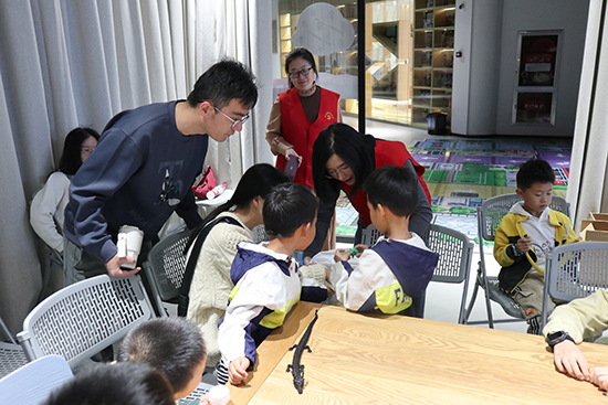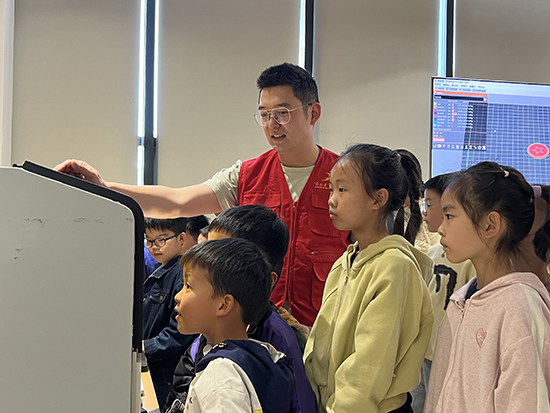 12名小朋友被分成2組,他們現場觀摩3D打印進程,其余4位黨員教師志愿者和4名學生志愿者也積極參與活動。這些黨員教師個個都是高技能人才,如浙江工匠褚佳祺、電工電子高級講師胡雙雙、機械高級講師郝婷婷和勵萍老師。有的志愿者負責向小朋友們進行一對一的現場答疑,有的志愿者現場給小朋友發放3D打印禮物。