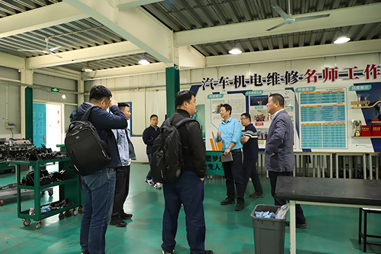 會后,張校長帶領賽幾位負責人參觀了汽車智慧實訓室、汽車機電維修名師工作室等實訓場地,進一步加深了雙方對彼此軟硬件設施及教學實踐環境的認識。
