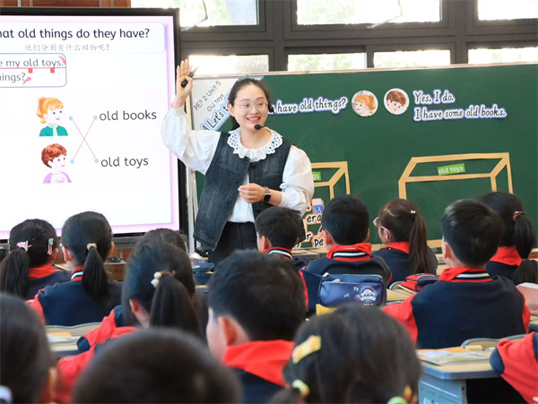 周宗麗展示Unit 3 Learning better A Let's talk,通過歌曲導入創設情境,以“禮貌借用文具”為主線,采用視頻、音頻等多模態輸入,引導學生習得社交用語。黃慧敏示范Unit3 Learning better A Let’s learn,聚焦學習用品詞匯,運用實物、動作等多元教學手段,設計由單詞到句型的梯度活動,最后通過創意書包設計實現分層教學。林施執教Unit 4 Healthy food A Let's talk,從單元整體視角出發,通過“三維追問法”解構語篇,為健康飲食單元教學提供系統化指導方案。鄭明麗分享Unit 4 Healthy food A Let’s learn,以歌曲激活主題,通過健康餐盤活動和情景串聯(家庭—食堂—餐館),培養學生健康飲食意識。鄭庭祎帶來Unit 5 Old toys A Let's talk, 創設"舊物漂流"真實情境,以問題鏈引導學生深度理解語言意義。張昀昊展示Unit 5 Old toys A Let's learn則通過任務鏈(聽讀練演)在語境中夯實詞匯教學,自然滲透環保理念。