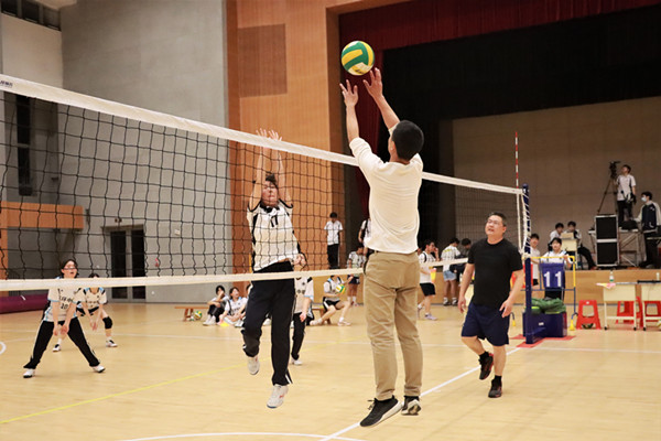 頒獎(jiǎng)結(jié)束后,教師聯(lián)隊(duì)與本屆冠軍中職女排隊(duì)展開(kāi)了一場(chǎng)友誼交流賽。賽場(chǎng)上,雙方在輕松氛圍中切磋技藝,通過(guò)排球傳遞師生情誼,進(jìn)一步拉近了課堂內(nèi)外的情感距離。