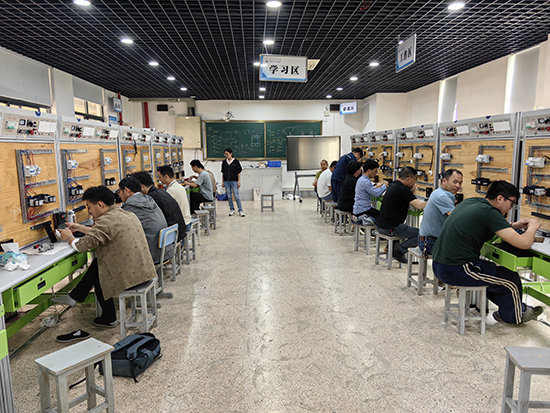 開班儀式上,學習中心負責人對學員們表示熱烈歡迎,并詳細介紹了此次培訓的課程安排、考核標準等重要內容。本次培訓考核分為理論考試和實操考試兩大部分,其中實操部分又細分為電子線路設計,電力拖動接線,機床排故,萬用表測量的使用等4個模塊。通過系統且全面的課程設置,力求讓學員們扎實掌握電工初級工所需的各項技能。