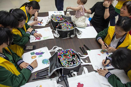 以“守護地球”為主題的“帆布袋彩繪”活動同樣吸引了眾多目光。學生們發揮創意,在帆布袋上繪制候鳥、森林、海洋等生態圖案,表達了對地球家園的熱愛與保護決心。這些獨一無二的帆布袋不僅展現了學生的藝術才華,更將環保理念融入日常生活,倡導低碳生活方式。