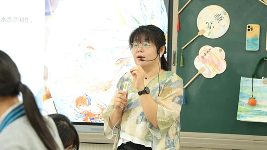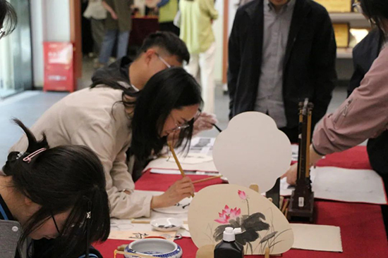 隨后,董倩倩老師和丁一蘭老師通過生動的講解和精湛的演示,現(xiàn)場教授了漆扇的制作方法和扇面的書寫技藝。同時,也讓參與活動的師生們親身體驗了非遺文化的魅力。
