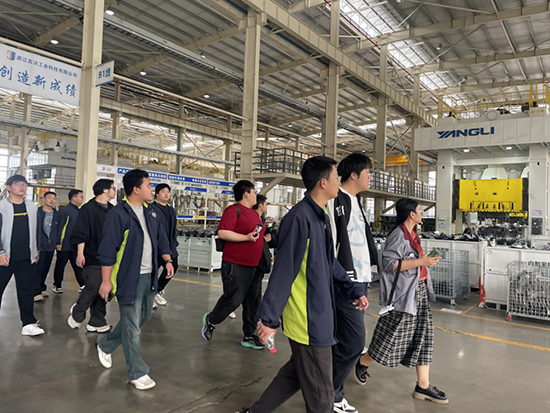 4月24日上午9時,學生們出發前往公司,在公司辦公室主任王意博的引領下,學生們首先參觀了吉沃科技的生產車間。生產線上的工人們熟練地操作著各種高精尖設備,汽車零部件從原材料到成品的每一個生產環節都盡收眼底。來到模具車間cnc工作區域,學生們近距離觀察了工人們如何操作精密的機械設備,大家紛紛感嘆科技企業的生產環境像一個充滿未來感的‘科技實驗室’,并表達了特別想要進入吉沃科技學習cnc數控加工技術的愿望。