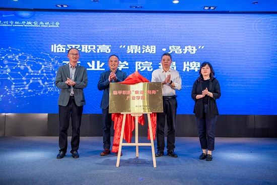 最后,省市區(qū)領導上臺共同推動代表著臨平職高“未來汽修”聯(lián)盟暨“鼎湖·鳧舟”產(chǎn)業(yè)學院成立的推桿,新征程就此啟航。
